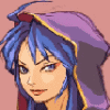 Short Description: Statuesque blue-haired woman with purple eyes