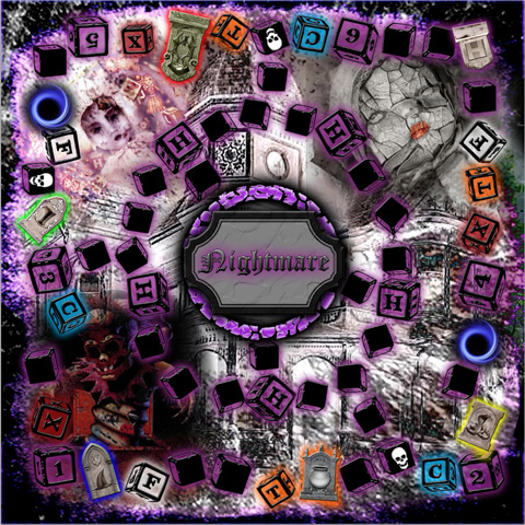 darkgaizat wrote:Okay, so here is the board I came up with (totally changeable) I added Skull, X, Number (like the original if you land on it and it's your number you can have a key) Chance (C), Fate (F), Time (T), Headstones, Black Holes and blank block squares. I also added H squares in the ring road area. (For whatever you would want to do with them)
