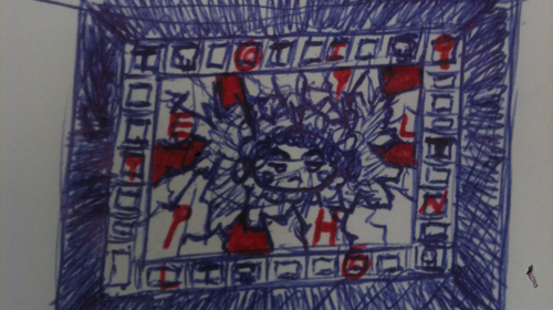 The shattered glass (if you can make it out) is the inner ring, which is the area Hellin would give you a certain time to explore. I colored some red since those are supposed to be like those curse spaces I mentioned before.